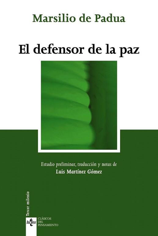 Las circunstancias históricas en que se escribe el ?Defensor Pacis? se señalan como tiempo de transición y de crisis: estaba en su final el Medievo abierto gradualmente a los nuevos signos de la Edad Moderna. En crisis la unidad religiosa y política de la cristiandad medieval; en crisis la unidad de la cultura dominada por el saber profano, matemática, medicina, filosofía, y por la teología, que marchan ahora cada una a su respectiva autonomía. El ?Defensor Pacis? es ante todo, por su intención inmediata, una requisitoria a Luis de Baviera, elegido emperador, para que se oponga a las pretensiones de los Papas en el terreno político, que Marsilio cree desbordadas y contrarias al espíritu y la letra del evangelio, y que presentan una iglesia poderosa y rica cuando su fundador la quiso pobre y humilde, sumisa a los poderes civiles en lo exterior. Con esta ocasión Marsilio desarrolla una doble teoría, de la sociedad civil y de la eclesiástica, que, en muchos aspectos, suscitará hoy, junto con el interés histórico, motivo de reflexión. Sin dejar de ser medieval, Marsilio permite ya vislumbrar el Renacimiento en sus aspectos más vitales, pegados a la tierra, el político y el político-eclesiástico