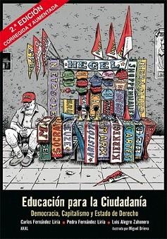 A principios del siglo XXI, en la España democrática, un partido socialista está a punto de aprobar una asignatura que en la precarizada educación pública pretende concienciar, animar a los futuros ciudadanos a la participación democrática, en un contexto nacional e internacional cada vez más degradado por la voracidad capitalista. Este ensayo es un tremendo contraataque a tamaña farsa. Ofrece un profundo análisis, auque expresado con llaneza y claridad, en torno a conceptos sociales y éticos tan importantes como la Ciudadanía, la Democracia, la Libertad (pública e individual), el Derecho, la Ley... desde los orígenes del debate en la Grecia clásica, pasando por la Ilustración hasta el convulso siglo XX. El resultado de esta revisión es demoledor: la grandeza de los planteamientos teóricos en los momentos cumbres del discurrir filosófico y político de la Historia de Occidente -la Grecia clásica, la Revolución francesa, las democracias modernas- resulta inversamente proporcional a la miseria, la injusticia, la violencia, la mezquindad y el horror humanos que han caracterizado en el plano práctico, a ras de tierra, en todo tiempo y lugar a las sociedades humanas. con una virulencia sin límites en el Capitalismo brutal del último siglo y las cómplices democracias occidentales. La obra revela con datos precisos, directos y sin miramientos políticamente correctos, las principales estrategias de las mal llamadas democracias modernas para perpetuar el desequilibrio. cómo cada intento revolucionario de las sociedades para cambiar el sistema neoliberal capitalista e instaurar otros modelos más justos (comunismo y anarquismo) ha sido violentamente reducido por los mismos estados adalides de la Democracia internacional -se atiende a los casos de Cuba y el cono sur latinoamericano, la URSS, la España de principios de siglo, etc-. Asimismo se defienden con contundencia los actuales y vivos intentos revolucionarios en América latina. Los autores realizan un esfuerzo poco usual por manejar materias en principio tan densas y adultas del modo más accesible e incluso atractivo para cualquier adolescente medio. Las geniales y corrosivas ilustraciones de Miguel Brieva constituyen un pilar fundamental para la obra, que adquiere una riqueza y calado crítico indispensable para las nuevas generaciones de cualquier democracia actual.