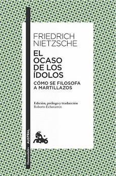 «Este escrito, de poco más de ciento cincuenta páginas, de tono alegre y fatal, como un demonio que ríe […], es un libro absolutamente excepcional; no hay nada más sustancioso, más independiente, más demoledor, más malvado. Si alguien quiere formarse brevemente una idea de cómo, antes de mí, todo se hallaba cabeza abajo, empiece por este escrito. Lo que en el título se denomina «ídolo» es sencillamente lo que hasta ahora fue llamado verdad. El ocaso de los ídolos, dicho claramente: la vieja verdad se acerca a su final». Así escribió Nietzsche sobre este libro en Ecce homo. Furiosamente denostado o alabado, y casi siempre mal interpretado, el autor de El ocaso de los ídolos lanza al lector la terrible sospecha de que quizás detrás de toda la acción humana, incluidas las moralmente más encomiables, se oculta el resentimiento de los débiles contra los más dotados para la existencia.
