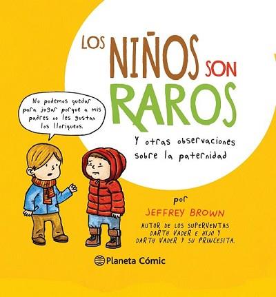 Como ha demostrado en anteriores libros, Jeffrey Brown tiene un talento especial para crear un humor peculiar sobre verdades universales. Ahora el autor de los superéxitos Vader e hijo y Vader y su princesita, nos aporta sus ingeniosas y cómicas observaciones terrenales sobre la paternidad en este ingenioso libro que recoge los momentos más surrealistas del crecimiento infantil. A través de unas viñetas encantadoras y llenas de color, Brown retrata irónicamente a su hijo de 5 años y su visión del mundo que le rodea: desde sus reacciones ante la televisión, pasando por su interacción con los juguetes hasta llegar a sus peticiones más estrambóticas. Un homenaje a los instantes dulcemente raros que madres y padres del mundo experimentan con sus curiosos e ingenuos retoños. Título original: Kids are weird