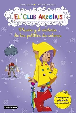 Pluvia, la ninfa de la lluvia, acaba de reunirse con sus amigas y, ahora, felices, pasean por un mercadillo. ¡Oh!, acaban de ver pollitos verdes, azules y rojos. ¡Alguien los ha pintado! ¡Eso está mal, pero que MUY MAL! ¿Podrá El Club Arcoíris rescatar a los pobres pollitos y descubrir al culpable?