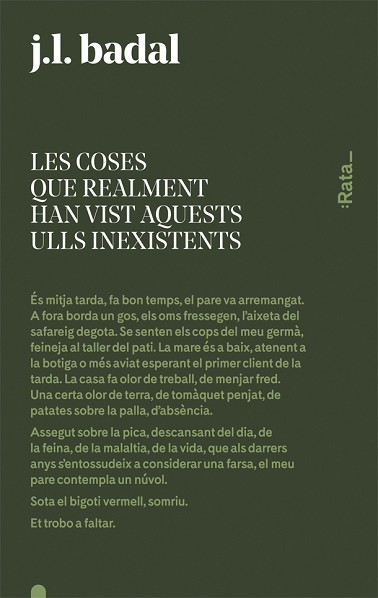 Hi ha una nit immensa i sense estructura. Però s'apostrofa amb el nostre cor. És mitja tarda, fa bon temps, el pare va arremangat. A fora borda un gos, els oms fressegen, l'aixeta del safareig degota. Se senten els cops del meu germà, feineja al taller del pati. La mare és a baix, atenent la botiga ...