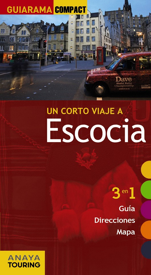 " Esta Guiarama de Escocia se divide en cinco secciones que abarcan los aspectos más importantes de este bello país y sus islas. En el apartado Una mirada a Escocia, se hace un breve recorrido por su historia, su población, naturaleza, paisaje y playas, así como una mención especial a personajes escoceses que han pasado a la historia. En la sección Diez lugares inolvidables, el autor propone como atractivos los siguientes lugares: Burns National Heritage Park, Burrel Collection, Campo de batalla de culloden, Castillo de Edimburgo, Glen Coe, New Lanark, Skara Brae, Tenement House y Traquair House. La guía divide Escocia en cuatro zonas: Edimburgo y los Borders, Glasgow y el suroeste, el centro de Escocia y el norte. Cada una de estas secciones incluyen breves descripciones de los principales puntos de interés de cada una de ellas, así como anotaciones de su gastronomía y costumbres. En el apartado titulado Dónde se incluye una amplia selección por localidades de restaurantes, alojamientos, direcciones de museos y monumentos, etc. Por último, en la sección Informaciones prácticas se ofrece una exhaustiva información para moverse por el país. En el interior de la guía se incluyen planos, un índice de calles y un mapa de carreteras. "
