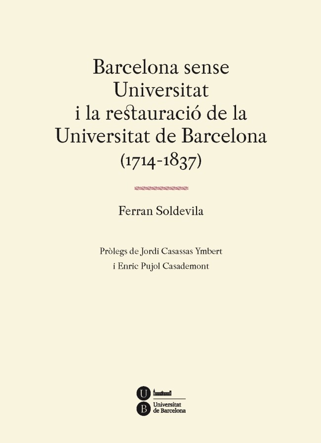 Cinc dies després que les tropes borbòniques entressin a Barcelona, el setembre de 1714, Felip V va decretar el tancament de la Universitat de Barcelona i la supressió immediata dels estudis que s?hi impartien. Els estudiants i els professors havien participat activament en la defensa de la ciutat durant el setge, i el monarca espanyol no va dubtar a considerar-la «fomento de maldades» i, tal com va fer amb les altres universitats catalanes, a suprimir-la com a mesura repressora. Va instituir la Universitat de Cervera, l?única existent al Principat durant cent vint anys, com a premi a la fidelitat dels cerverins. La tradició cultural i acadèmica de Barcelona, però, va saber resistir a l?anorreament a què l?havien condemnat. L?anomenada societat civil ?per dir-ho amb una expressió d?ara? va lluitar enèrgicament per evitar l?enfonsament cultural i recuperar els ensenyaments superiors a la ciutat. Amb tot, no va ser fins al 1837, i després de diferents intents fallits a causa dels entrebancs i les dilacions del poder espanyol, que la ciutat va poder restablir allò que mai no li hauria d?haver estat negat: la pròpia universitat. Ferran Soldevila ho va narrar, en plena guerra civil, a Barcelona sense Universitat i la restauració de la Universitat de Barcelona (1714-1837). L?entrada dels militars espanyols, però, va impedir que l?obra pogués veure la llum i els plecs impresos ?que reproduïm en aquesta edició facsímil? van quedar en un racó de la Universitat fins que l?any 1950 es van poder enquadernar i distribuir gairebé en clandestinitat. La prosa de Soldevila, elegant i amena, va rebre elogis entusiastes de Josep Pla i Joan Fuster pel seu valor literari i historiogràfic. Llegir-lo avui és recuperar la memòria dels moments més dramàtics però també els més esperançadors de la nostra història.