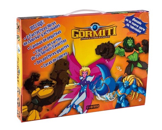 Con este fabuloso maletín puedes llevarte a tus Gormiti favoritos dondequiera que vayas. Incluye libros de colorear y actividades, montones de pegatinas, personajes troquelados para jugar y ceras para colorear. Y todo dentro de un fantástico maletín.
