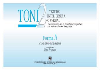 Medida del funcionamiento intelectual mediante la evaluación de la capacidad para resolver problemas abstractos de tipo gráfico, eliminando la influencia del lenguaje y de la habilidad motriz. Existen dos formas A y B, incluidas en un mismo Cuadernillo, cada una de ellas formada por 55 elementos. La aplicación del TONI-2 se realiza siguiendo unas normas fijas y concretas y se corrige con criterios objetivos. Las puntuaciones directas se pueden transformar en centiles o en cocientes de desviación.