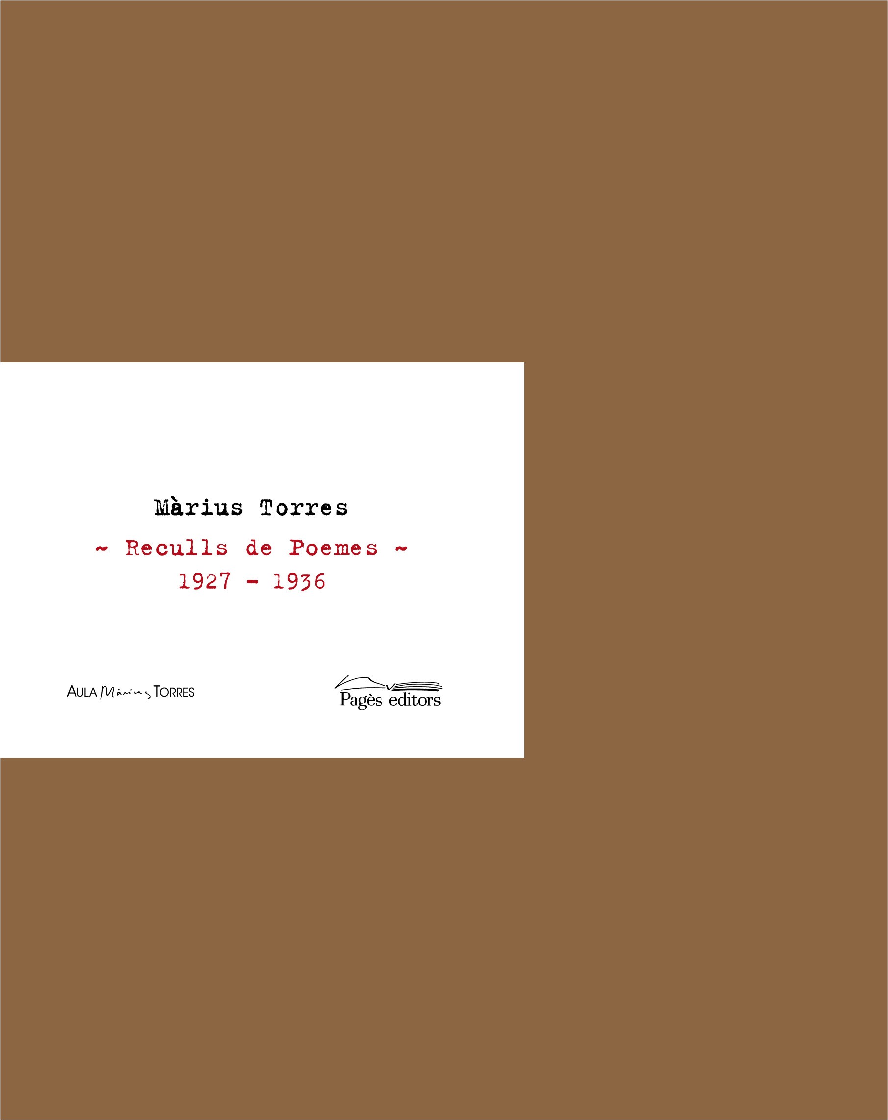 Reculls de poemes (1927-1936) aplega, en edició facsímil, la prehistòria literària del poeta. Es tracta dels tres primers reculls de poesies que Torres va confegir en els seus anys de joventut i al llarg de tres períodes diferents: 1927-1929, mentre cursa els estudis de medicina a Barcelona; 1931-1934, en el darrer tram de la seva llicenciatura i quan obre consulta com a metge; i 1936, al llarg, del primer any d?internament al sanatori de Puig d?Olena. Els dos primers reculls, ?Primers poemes, 1927-1929? i ?Música de cambra i altres poemes? formen part del Llegat Màrius Torres, conservat a la Biblioteca de la Facultat de Lletres de la Universitat de Lleida. Els textos estan mecanografiats i eren, en principi, d?ús privat del poeta. El tercer recull, ?Per a Mercè Figueres. Tria de poesies de Màrius Torres?, que prové del llegat Mercè Figueres, és d?un exemplar manuscrit elaborat per Torres com a regal de Nadal per a la seva amiga i companya de sanatori. El recull està dividit en set apartats, precedits, cadascun d?ells, per una portadella amb el títol i un dibuix a color de l?autor.