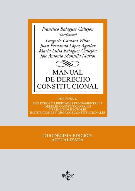Este Manual de Derecho Constitucional va dirigido a los estudiantes de Derecho de Facultades y Escuelas Universitarias en las que se imparten asignaturas de Derecho constitucional y de introducción a nuestro sistema constitucional y a nuestro ordenamiento jurídico. Sus autores son profesores de las Universidades de Granada, Málaga y Las Palmas, con un alto grado de especialización en los temas de cuya redacción se han encargado. En este segundo volumen se analizan el sistema de derechos y libertades así como las instituciones y los órganos constitucionales.