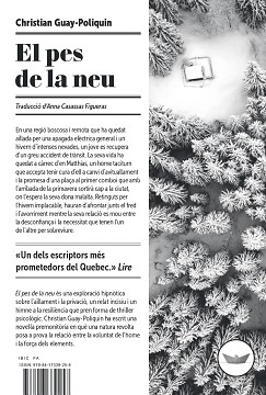 El pes de la neu és una exploració hipnòtica sobre l'aïllament i la privació, un relat incisiu i un himne a la resiliència que pren forma de thriller psicològic. Christian Guay-Poliquin ha escrit una novel·la premonitòria en què una natura revolta posa a prova la relació entre la voluntat de l'home i la força dels elements.