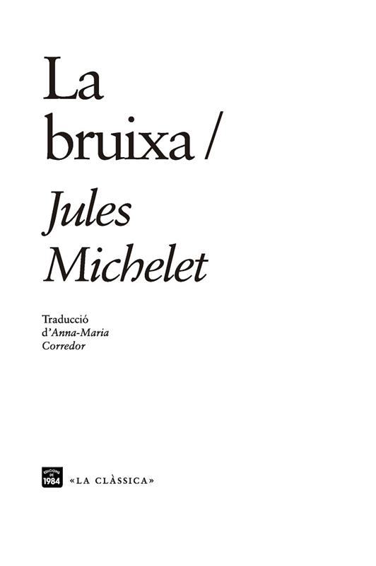 La dona, l’amor, la natura, però també els capellans i en particular els directors espirituals, van obsedir Michelet; tots aquests temes els trobem a La bruixa. La bruixa, ja ho sabem, tradicionalment és una dona malvada, menyspreada, tan perversa que l’Església en va fer cremar un munt en horribles fogueres sobretot sota la Inquisició: les actes dels judicis per bruixeria ho demostren, és a dir, demostren que allò va passar, però Michelet no es conforma amb això. Precisament se sorprèn que cap dels seus predecessors estudiosos de la bruixeria no s’hagi interessat pel que ell anomena «la cronologia moral de la bruixa», com si la bruixa hagués sorgit de sobte del no-res, i és així que ell es proposa indagar per què en un determinat moment la dona, per qui ell sentia tanta admiració, va arribar a ser bruixa. Michelet troba una paraula per resumir l’origen d’aquesta figura tan maltractada històricament: desesperació. Si en la primera part del llibre es dedica a «rescatar» la dona desesperada que hi ha darrere la bruixa, en la segona part es proposa fer reviure les angoixes de les noies víctimes dels convents, anorreades per frares i monges sovint tanoques o amb una salut mental dubtosa, que cometen els pitjors abusos d’una manera impune i, el que és més ignominiós, emparats per les altes esferes polítiques i eclesiàstiques. Michelet ens parla d’una història fosca que acaba al país de la llum: en efecte, l’escriptor va posar el punt final a la seva obra a Toló, en ple Migdia, ciutat a la qual dedica belles descripcions. Ben segur que la idea de Michelet de rescatar la dona traient-la de la foscor de l’edat mitjana i del segle XVII i de rehabilitar-la fent-ne apologia a través de la figura de la bruixa és una valuosa contribució al progrés de les idees, molt d’acord amb els nous aires del seu temps. Del pròleg d’Anna-Maria Corredor