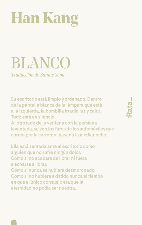 En algunas culturas orientales el blanco es el color del luto. Quizá las cosas blancas que nos rodean preservan nuestro dolor, contienen una angustia que no sabemos ver a primera vista. Kang se adentra en una delicada indagación literaria y busca, a través de la descripción de cosas cotidianas, el mal que siempre ha sentido por la ausencia de una hermana a quien no conoció.